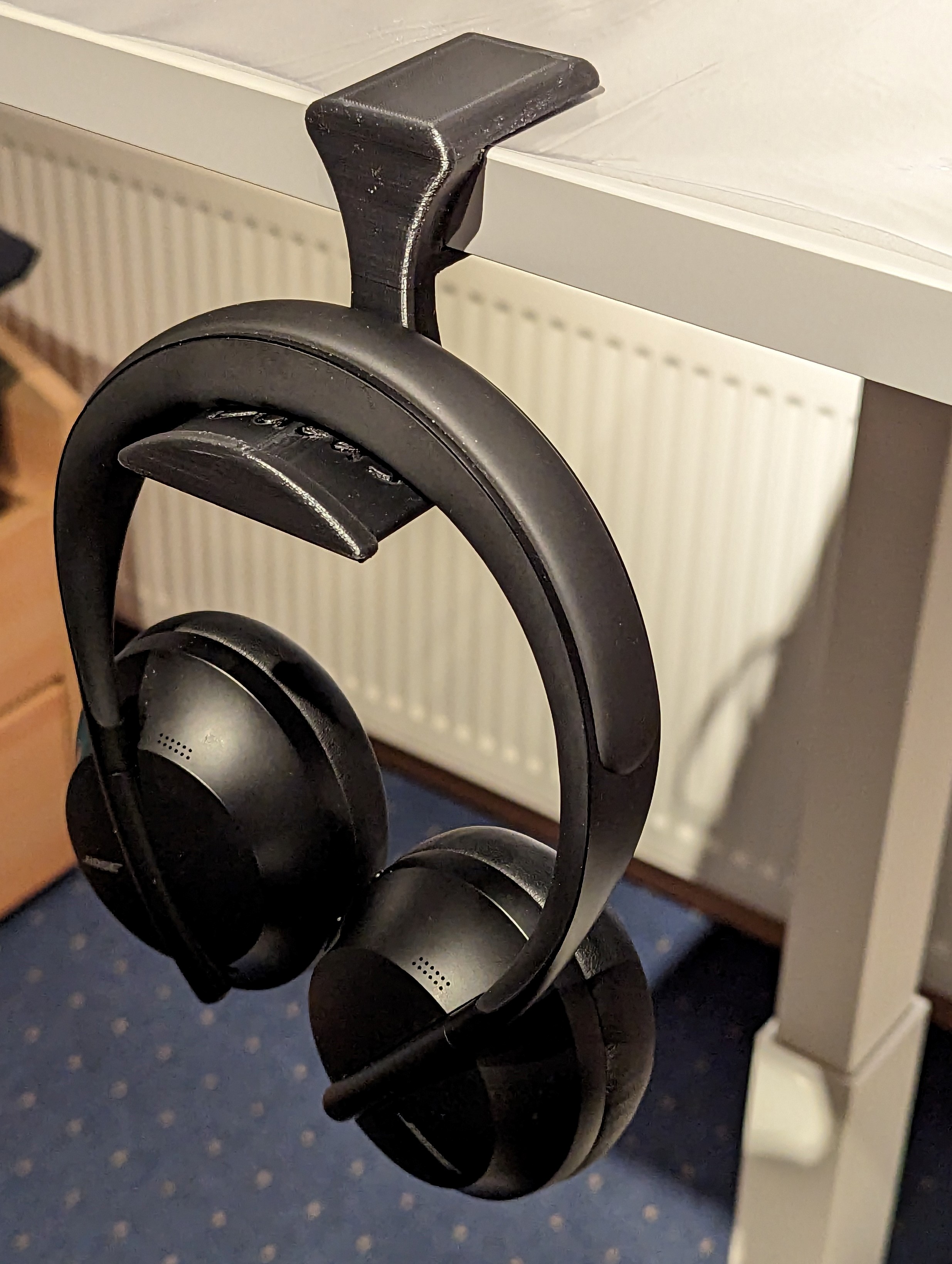 Ausgangssituation: Am Computer benutze ich oft Kopfhörer. Sei es für Online Meetings oder um in Ruhe Musik zu hören. Dabei stellt sich immer die Frage: Wo tue ich sie hin, wenn ich sie gerade nicht benutze? In der Vergangenheit lagen sie einfach auf dem Schreibtisch und haben Platz weggenommen.