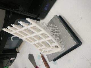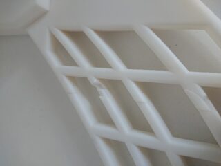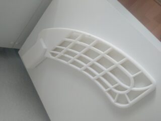 Daraufhin wurde das identische Modell in die Slicer-Software des Ultimaker S5 geladen und mittels FFF aus Polypropylen hergestellt. Um die Herstellung zu beschleunigen, wurde hierbei die Oberflächenqualität vernachlässigt und in der Einstellung “draft” mit 0,3mm Schichtdicke gewählt. Die Füllung des Modells beträgt 40%.