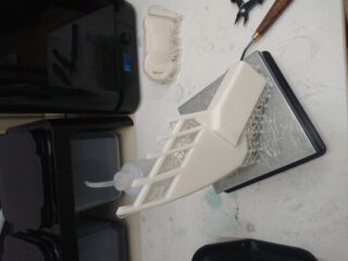 Hierbei wurde die Form als sehr gut empfunden, allerdings ist das Resin von zu hoher Dichte, wodurch die Kelle als Sportgerät zu schwer wird. Zudem ist beim Versuch die Teile zu verbinden an mehreren Stellen Material ausgebrochen, da das Material zu spröd und zu starr ist (fehlende elastische Verformbarkeit).