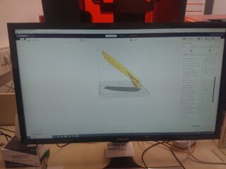 Das Modell wurde nach der Vorlage einer real existierenden Floorball-Kelle angepasst in Autodesk AutoCAD konstruiert. Nach einer ersten Kontrolle und dem Wunsch den ersten Prototyp mittels Stereolithographie herzustellen, musste das Modell in zwei Teile geteilt werden, da der Bauraum des Formlabs Form 3 nicht die ausreichende Größe besitzt.